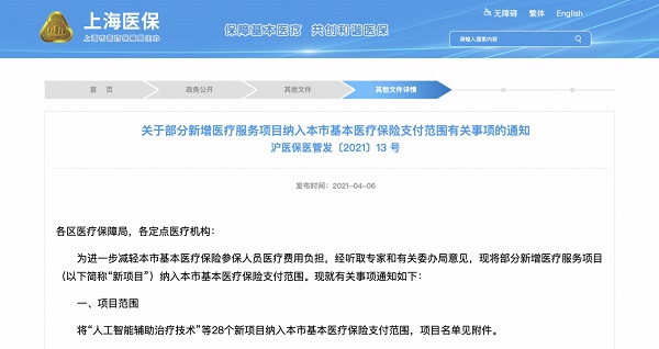 ②2021年4月20日,上海市醫(yī)保局將腔鏡機(jī)器人手術(shù)以“人工智能輔助治療技術(shù)”的名稱納入乙類醫(yī)保,患者自付20%,醫(yī)保報(bào)銷范圍包括前列腺癌根治、腎部分切除、子宮全切、直腸癌根治。